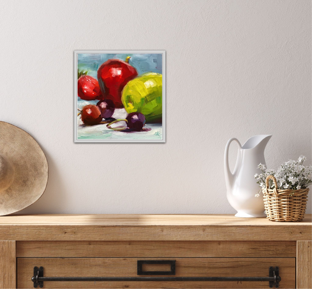 Ölgemälde Äpfel mit Kirschen - Feine Ölmalerei für dein Zuhause