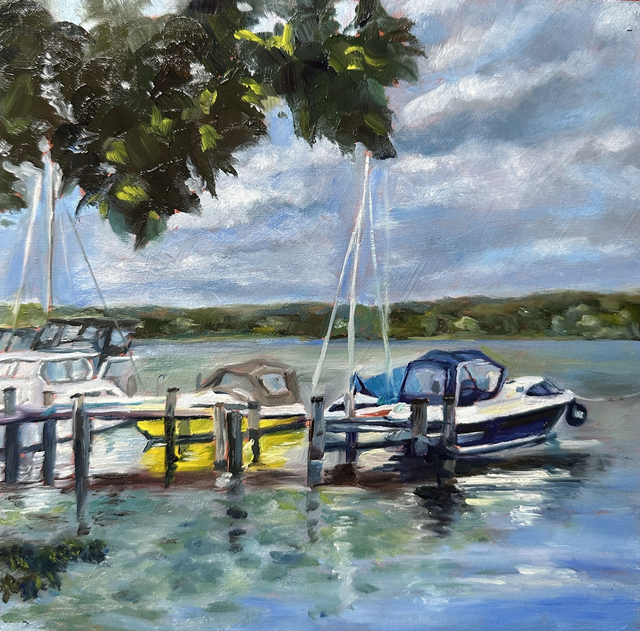 "Boote an der Havel"- ist ein malerisches Daily Painting, welches die Sommerstimmung einfängt und festhält. Die Boote sind an der Anlegestelle festgemacht und bewegen sich nur leicht im ruhigen Wasser.