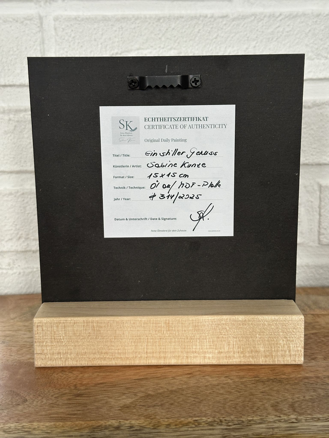 Es sind oft die leisen Momente, die besonders gut tun. Ein stiller Augenblick und ein sanfter Blick auf Farbe und Form. Genau dieses Gefühl fängt dieses kleine Ölbild ein. Satte Farbtöne, weiches Licht und eine feine, lebendige Struktur wirken ruhig und zugleich belebend.