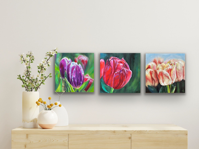 Die "Gelben Tulpen" bringen Dir den Frühling nach Hause. Die lebendigen Farben und dynamischen Formen fangen die Essenz des Frühlings ein. Mein Kunstwerk schafft zudem eine Atmosphäre der Ruhe und Gelassenheit. Es lädt Dich ein inne zu halten, die Schönheit der Natur zu bewundern und Dich von der Energie inspirieren zu lassen. Also warum warten? Lass den Frühling in Dein Leben und Dein Zuhause.