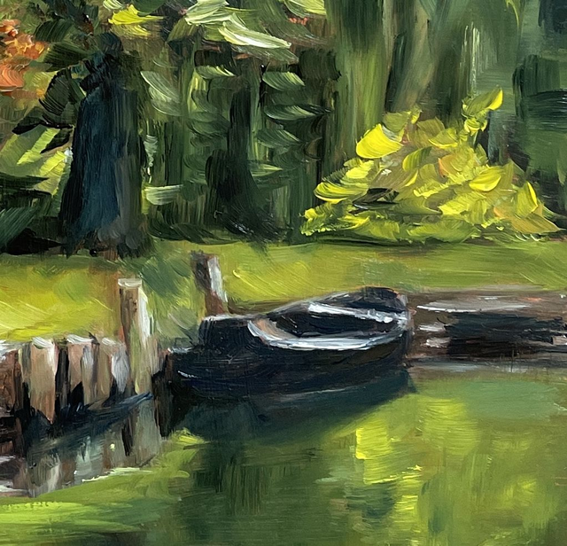 Ölbild - Kahn am Steg