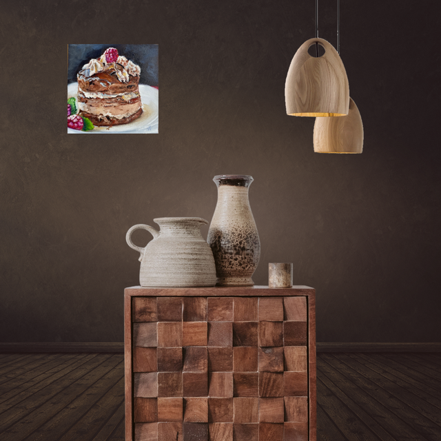 Das Ölbild Leckeres Törtchen ist ein fröhlicher Blickfang für Küche, Esszimmer oder Wohnbereich. Es bringt eine heitere, genussvolle Stimmung in dein Zuhause und eignet sich wunderbar als Geschenk für Liebhaber feiner Handwerkskunst.