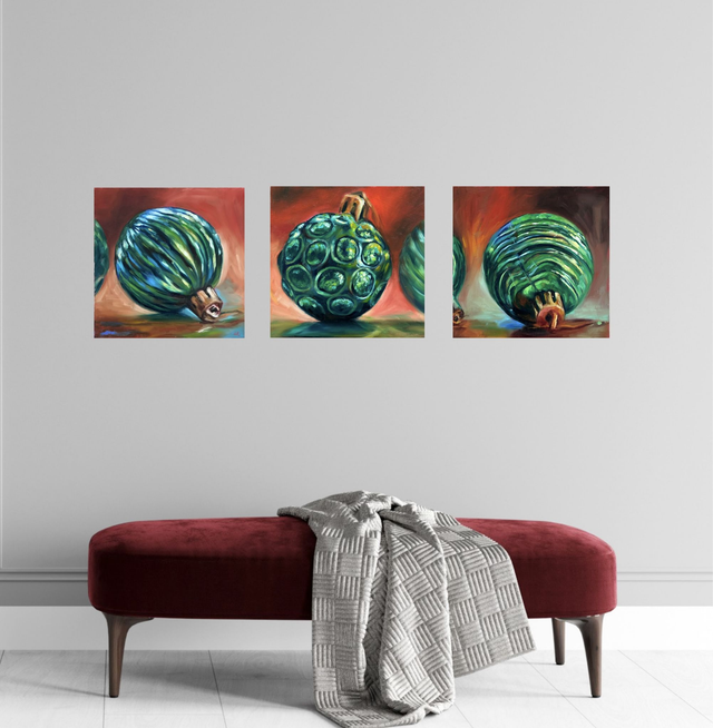 Das kleine Kunstwerk Lichterglanz hält genau dieses Funkeln fest: satte Grüntöne, goldene Reflexe und ein sanfter Schimmer, der an die ruhige, warme Stimmung der Adventszeit erinnert. Ein kleines Original, das Eleganz und Festlichkeit verbindet – ideal für deine Wohnküche, den Essbereich oder als liebevolle Geschenkidee.