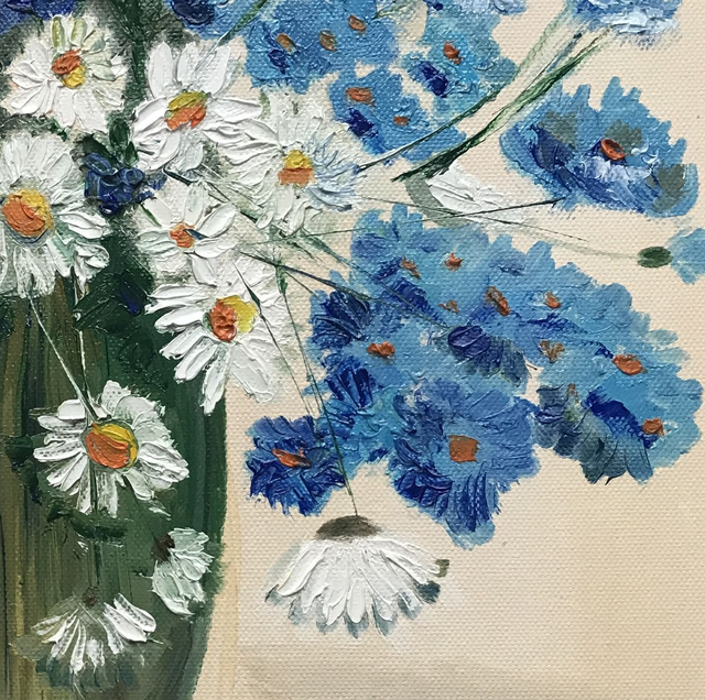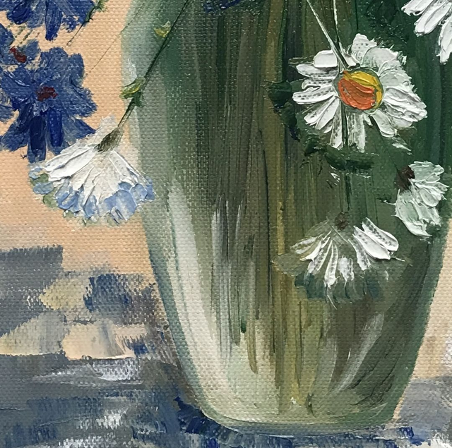 Margeriten und Kornblumen – Feine Ölmalerei für dein Zuhause