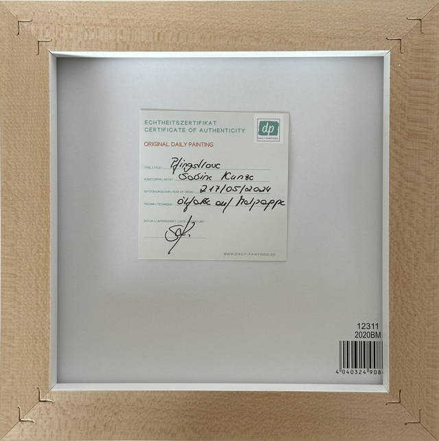 Mit 20 × 20 cm ist dieses Original ein eindrucksvoller Akzent für dein Zuhause – ob im Wohnzimmer, Schlafzimmer oder als florale Wandkunst in hellen Räumen. Der weiße Rahmen unterstreicht die Wirkung und macht das Werk sofort bereit zum Aufhängen.