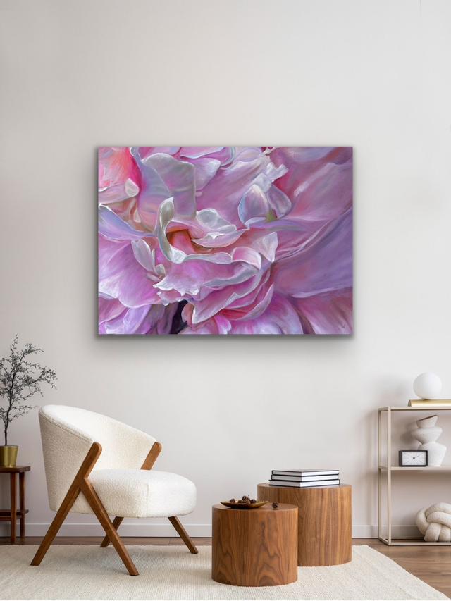Dieses wunderschöne und ästhetisch ansprechende Ölbild verzaubert nicht nur Dich, sondern auch Deine Räume. Beim Betrachten löst das Bild ein Glücksgefühl und Harmonie aus. Und genau diesen emotionalen Bezug wollte ich mit meinem Bild einfangen. Die üppige Blüte auf meinem Kunstwerk verblüht nie und bringt zu jeden Tages- und Jahreszeit Freude und Wohlbehagen. Lass dieses Glücksgefühl in Deine Räume!