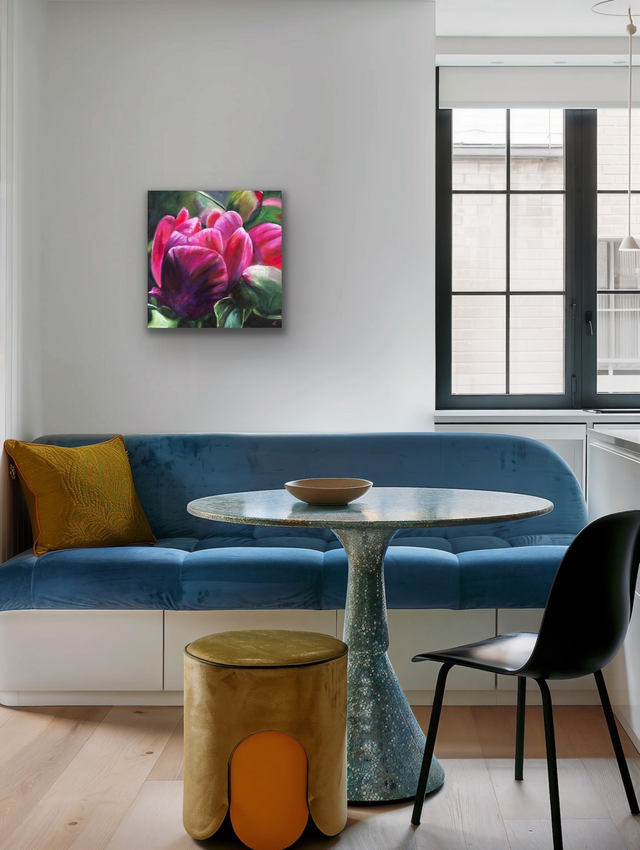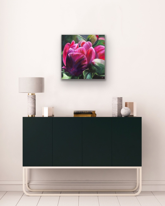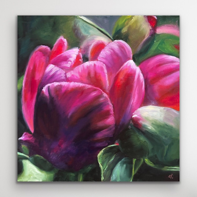 Bringe mit meinem handgemalten Ölgemälde "Rote Pfingstrose" zeitlose Eleganz und florale Schönheit in Dein Zuhause; egal ob als highlight im Wohnzimmer, Schlafzimmer oder Büro. Die leuchtenden Rottöne verleihen dem Bild eine besondere Tiefe und Ausdruckskraft. Jedes Detail wurde mit hochwertigen Ölfarben in liebevoller Handarbeit auf Leinwand gebracht.