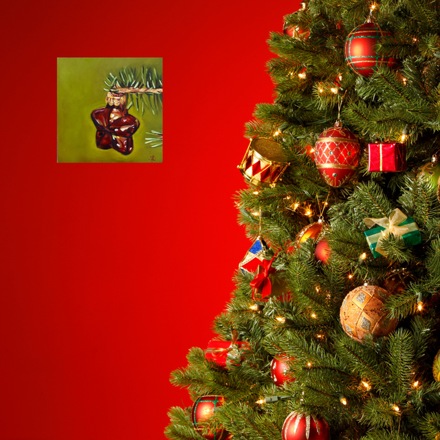 Ölgemälde „Roter kleiner Weihnachtsstern“ – Feine Ölmalerei für dein Zuhause