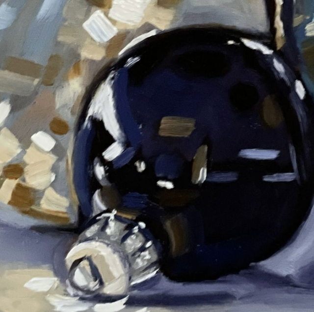 Vielleicht kennst du diesen Moment, wenn ein kleiner Lichtschein die Adventszeit ein bisschen magischer wirken lässt. Genau dieses Gefühl habe ich in diesem handgemalten Original eingefangen. Eine festlich glänzende Kugel in tiefem Blau, durchzogen von feinen Lichtreflexen und warmer Stimmung.