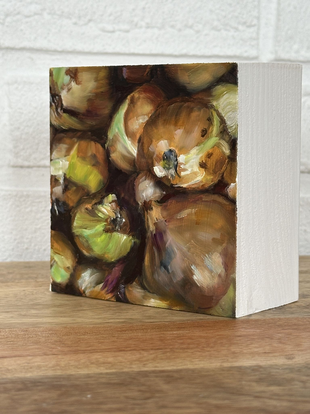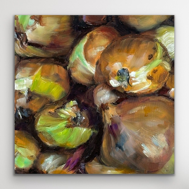 Für dieses kleine farbgewaltige Kunstwerk wurde ich von der Vielschichtigkeit einer Zwiebel inspiriert. Schicht für Schicht entfaltet sich ihre Form, ihr Aroma und ab und zu auch eine Träne.
